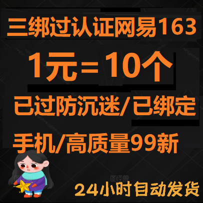 网易163三绑已绑手机已实名1元10个¥1.00